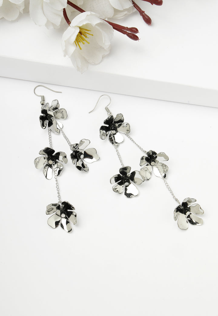 Gleaming Silver-Coloured Floral Dangle Earrings