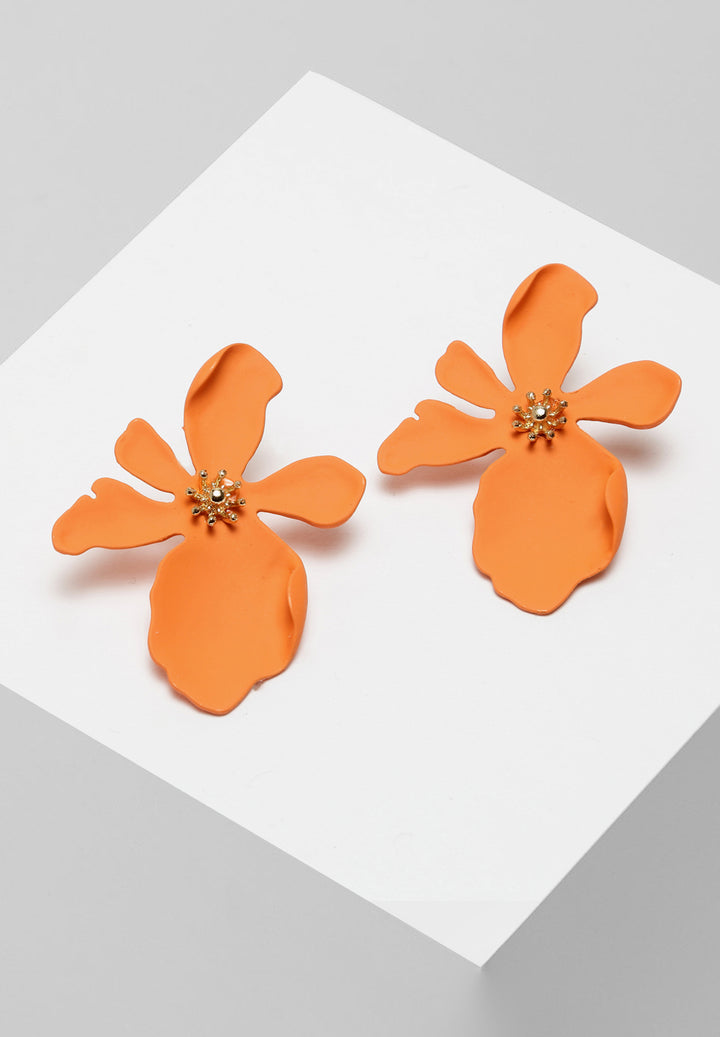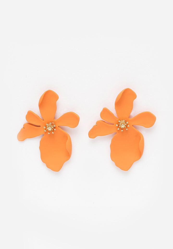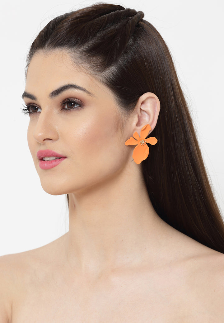 Featuring large and intricate flower designs, these earrings are a true showstopper. These earrings adds a playful touch, while the size of the flowers ensures that they catch attention and become a focal point of your look. The vibrant orange color adds a sense of energy and vibrancy, making these earrings a standout accessory that will turn heads wherever you go. The lightweight construction ensures comfortable wear, allowing you to showcase your style easily.